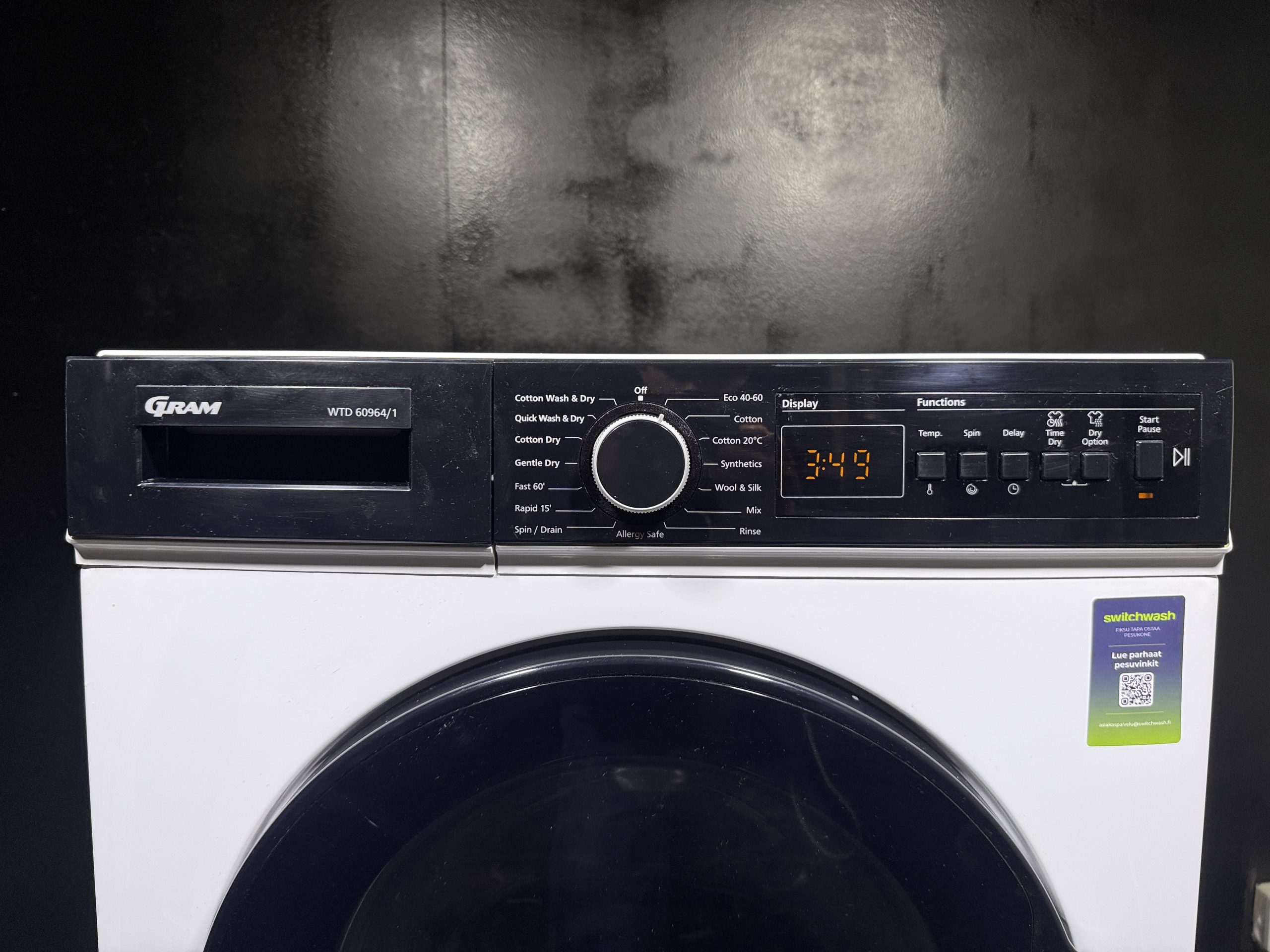 – Monipuoliset pesuohjelmat mm: Pikapesut 15' & 60', Pikapesu+Kuivaus, Pelkkä kuivaus